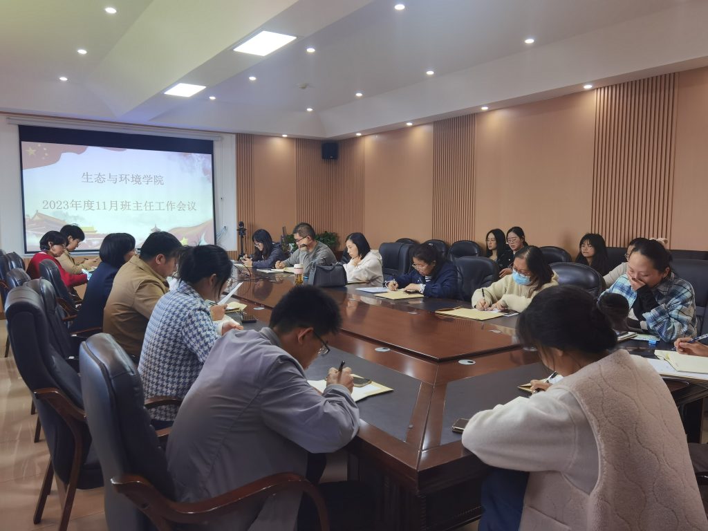 为进一步提升员工教育管理工作质量,切实提高学院班主任工作实效,生态与环境学院于11月10日中午12点在工学楼614会议室召开全体班主任工作会议,公司党委书记刘建祥,党委副书记邓志华,全体班主任及学院辅导员参加会议,会议由邓志华主持。