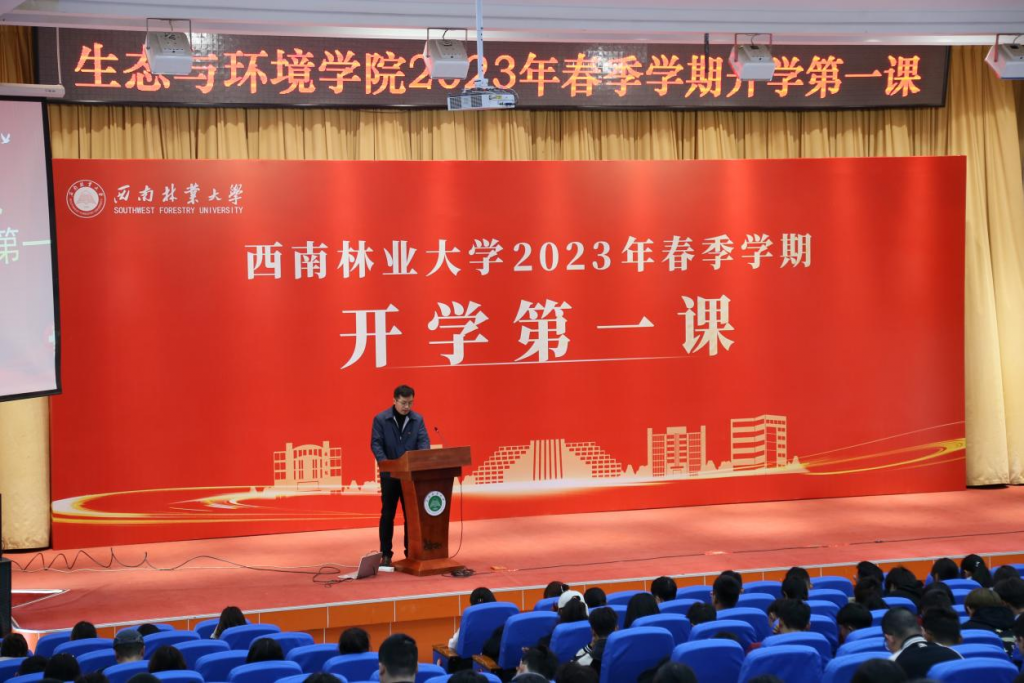 2月28日,生态与环境学院在第一图书馆大报告厅开展2023年春季学期开学第一课”活动。生态与环境公司党委书记刘建祥主讲400余名师生代表参加。