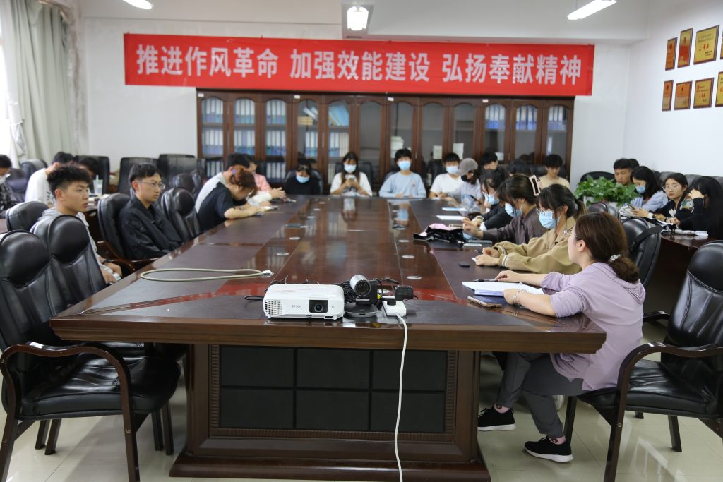 2022年6月23日,生态与环境学院团委于工学楼614会议室组织召开2022年第六次理论学习研讨会,会议由学院团委书记夏菁主持,各团支部书记及副书记参加本次会议。