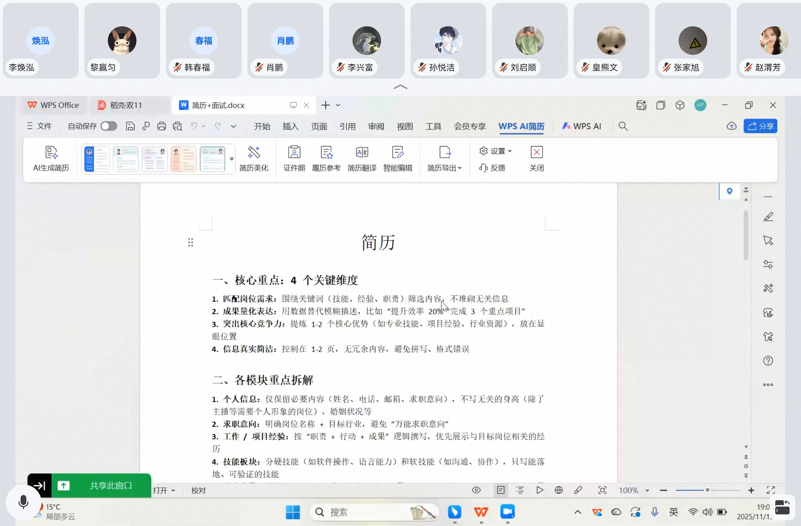 培训会上,黎赢匀围绕“如何让简历突出优势”和“面试中如何高效展现自我”两大模块展开讲解。针对简历撰写,结合企业HR筛选简历的核心逻辑,详细拆解了个人信息、教育背景、实习经历、技能证书等板块的优化技巧,帮助同学们避开简历撰写误区。